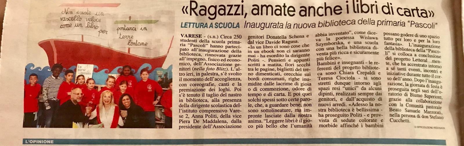 Sabato, 18 maggio 2019, durante la festa di fine anno scolastico della scuola primaria “G. Pascoli”, è stata inaugurata la nuova biblioteca.